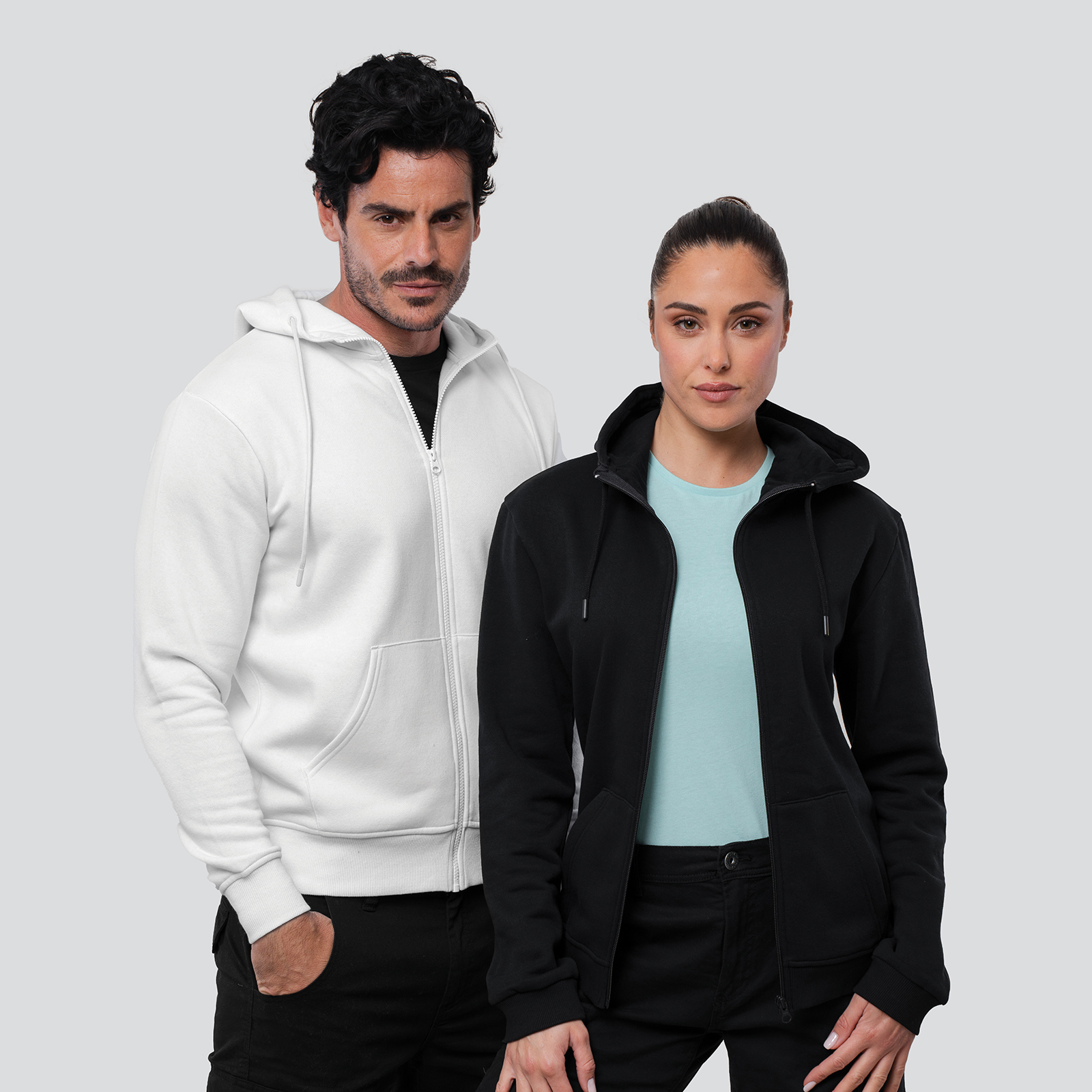 Sudadera con cremallera larga y capucha, cordones y topes de PVC a juego