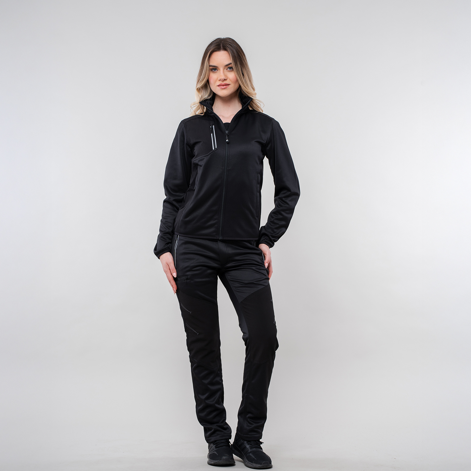 - Tessuto elasticizzato antiabrasione 90% nylon - 10% elastan sulle ginocchia con impunture in contrasto