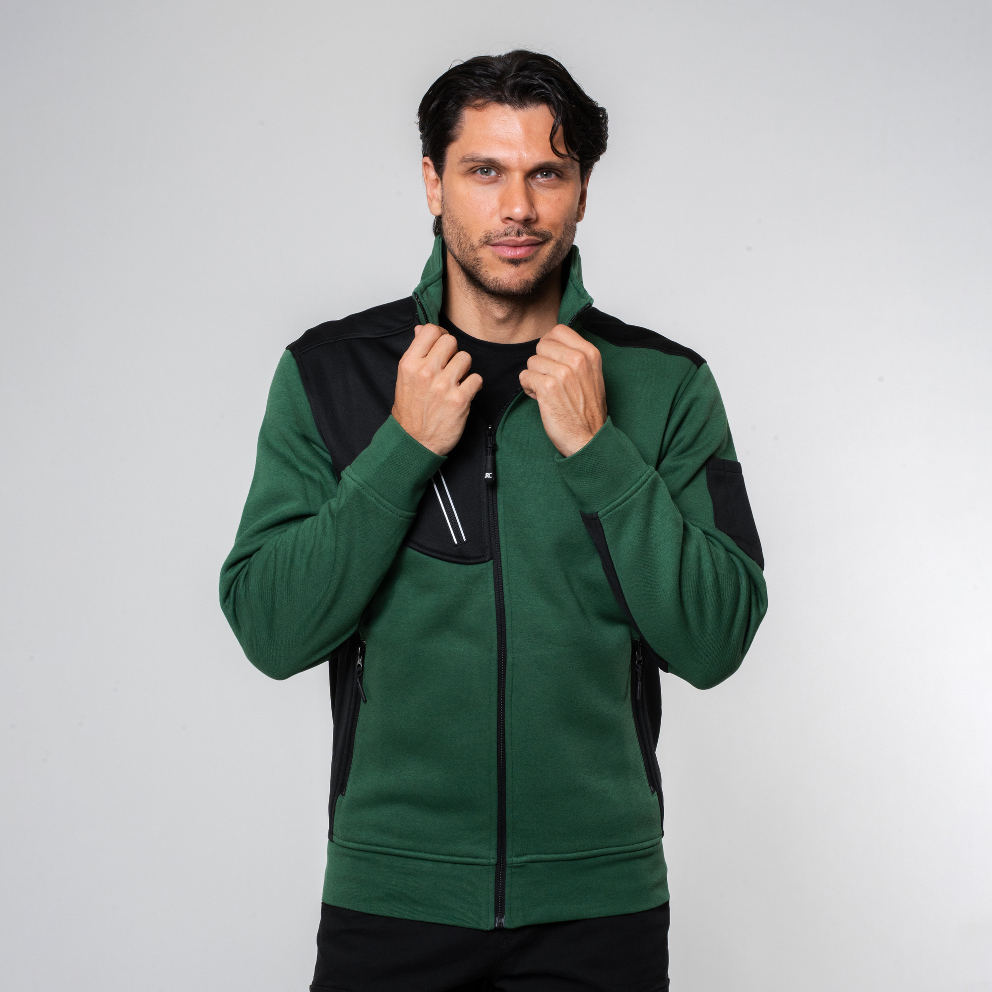 - Una tasca con zip sul petto con nastratura